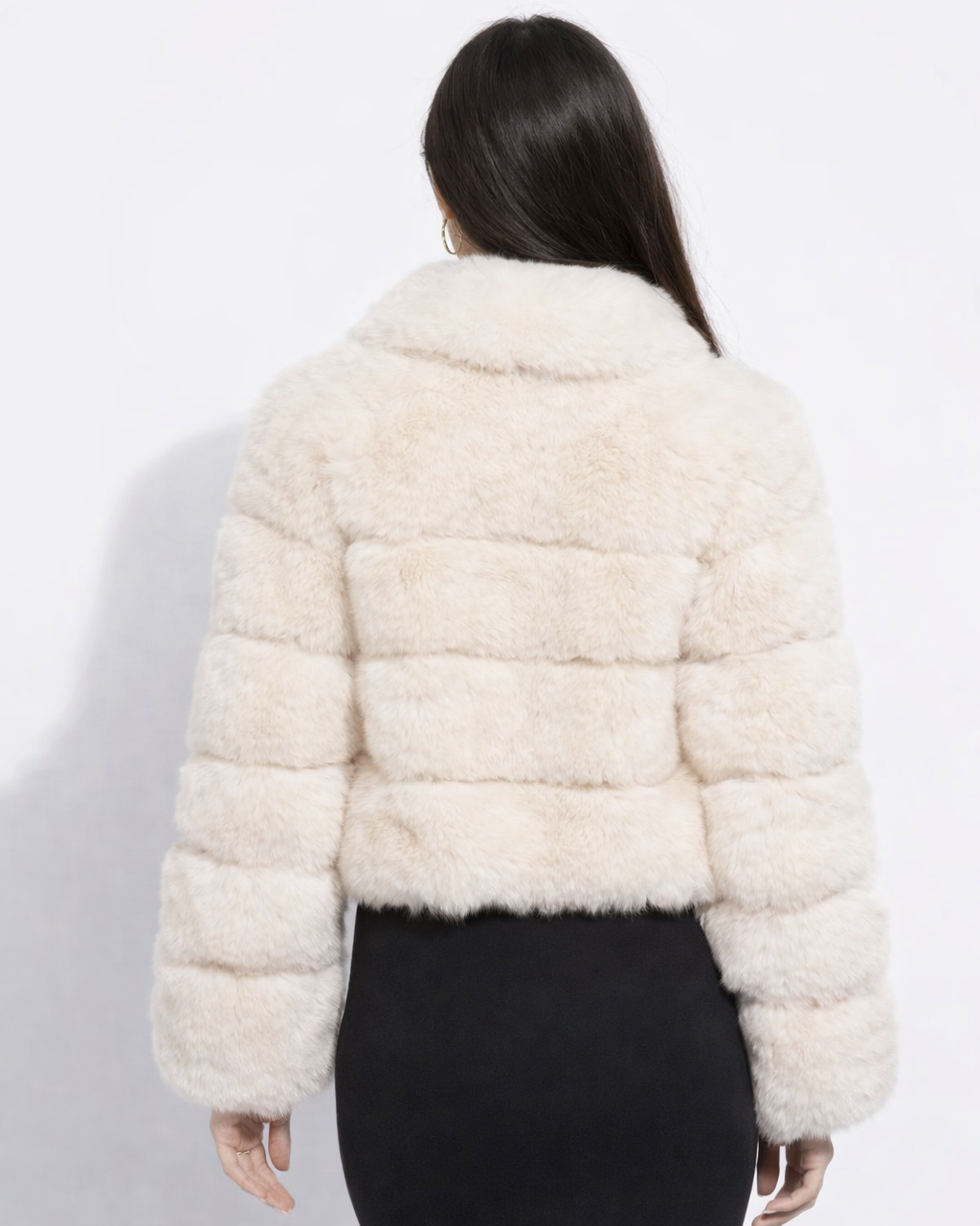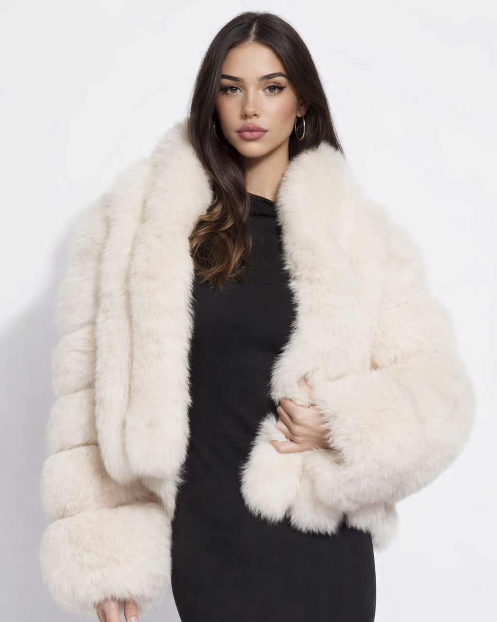 A statement faux-fur coat designed to deliver ultimate glamour and warmth. Featuring a plush, voluminous silhouette with a soft, luxurious finish, it elevates everything from sleek evening dresses to winter city looks.
